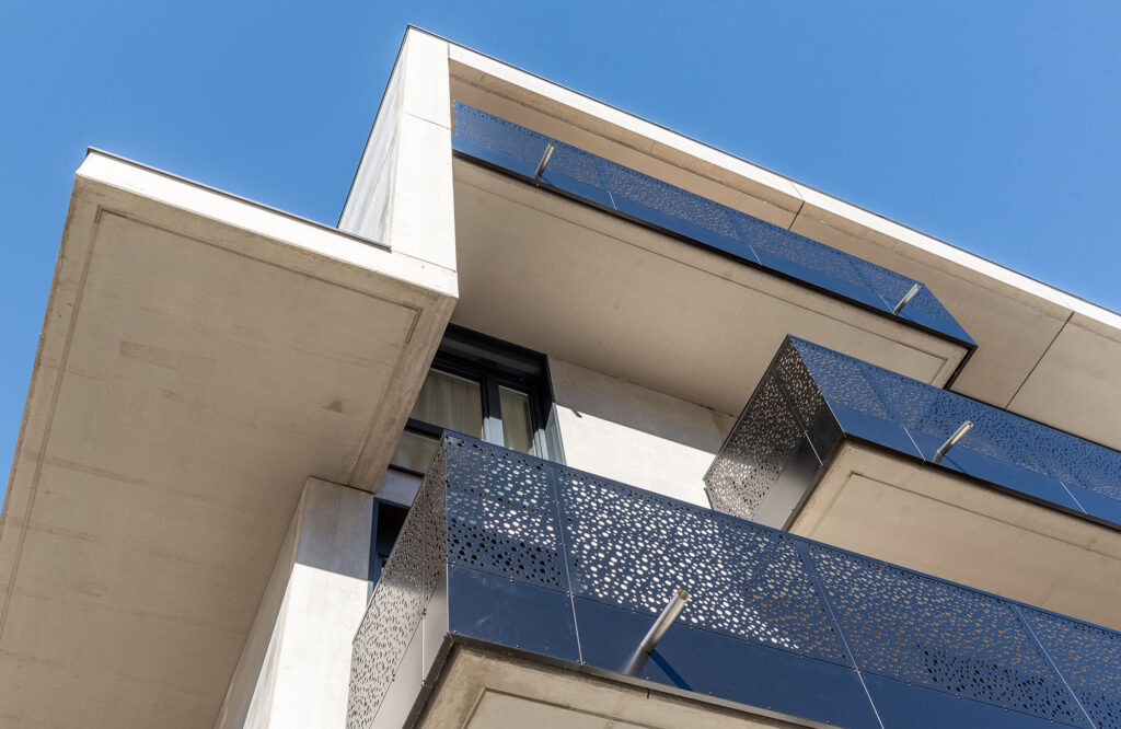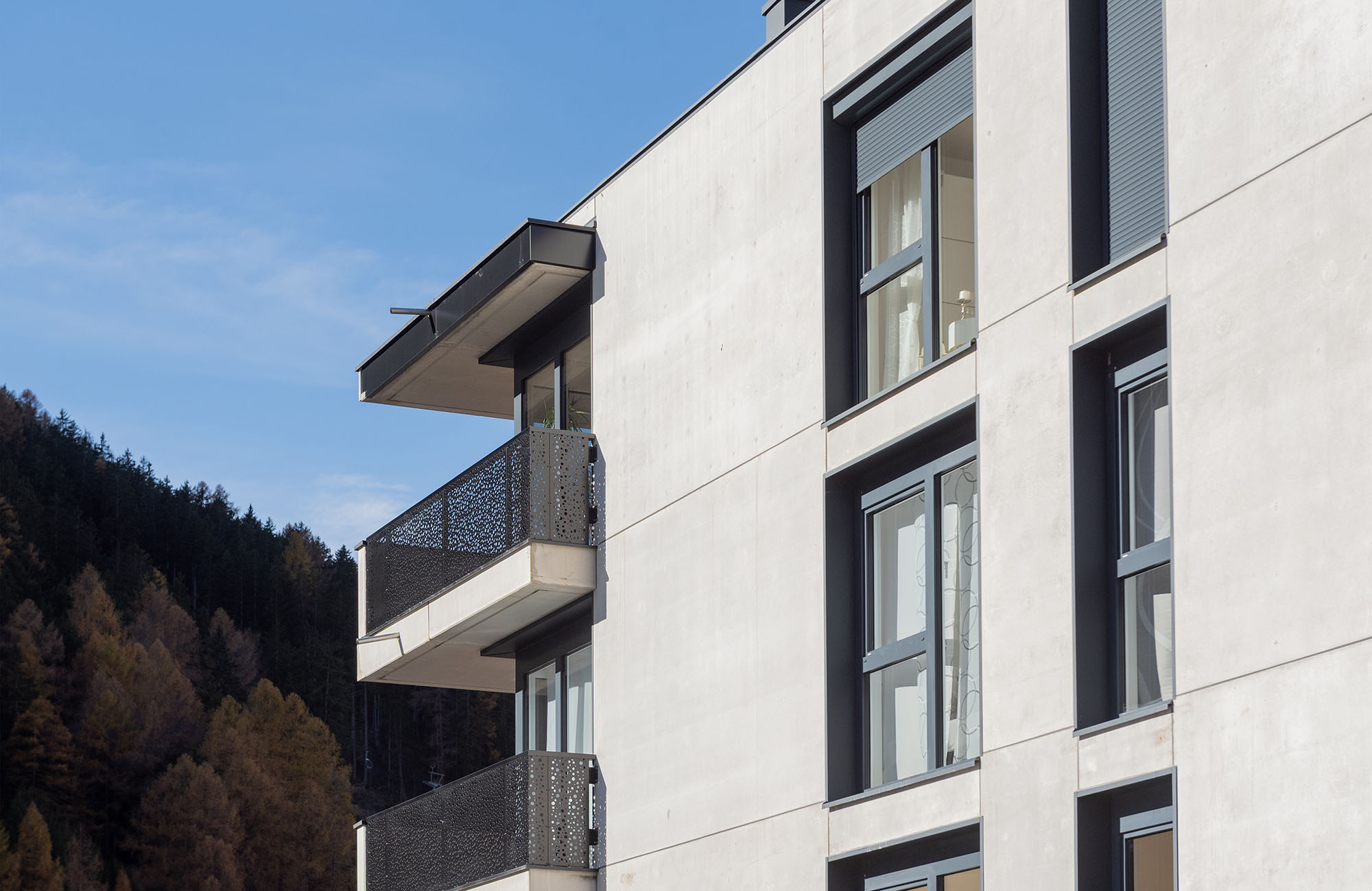 Das innovative Bauwerk aus zwei eleganten Baukörpern wurde mittels kerngedämmter Sichtbetonfertigteilwände kosten- und zeiteffizient errichtet, wobei der hohe Vorfertigungsgrad eine wichtige Zukunftsstrategie für das Bauen im Allgemeinen darstellt.