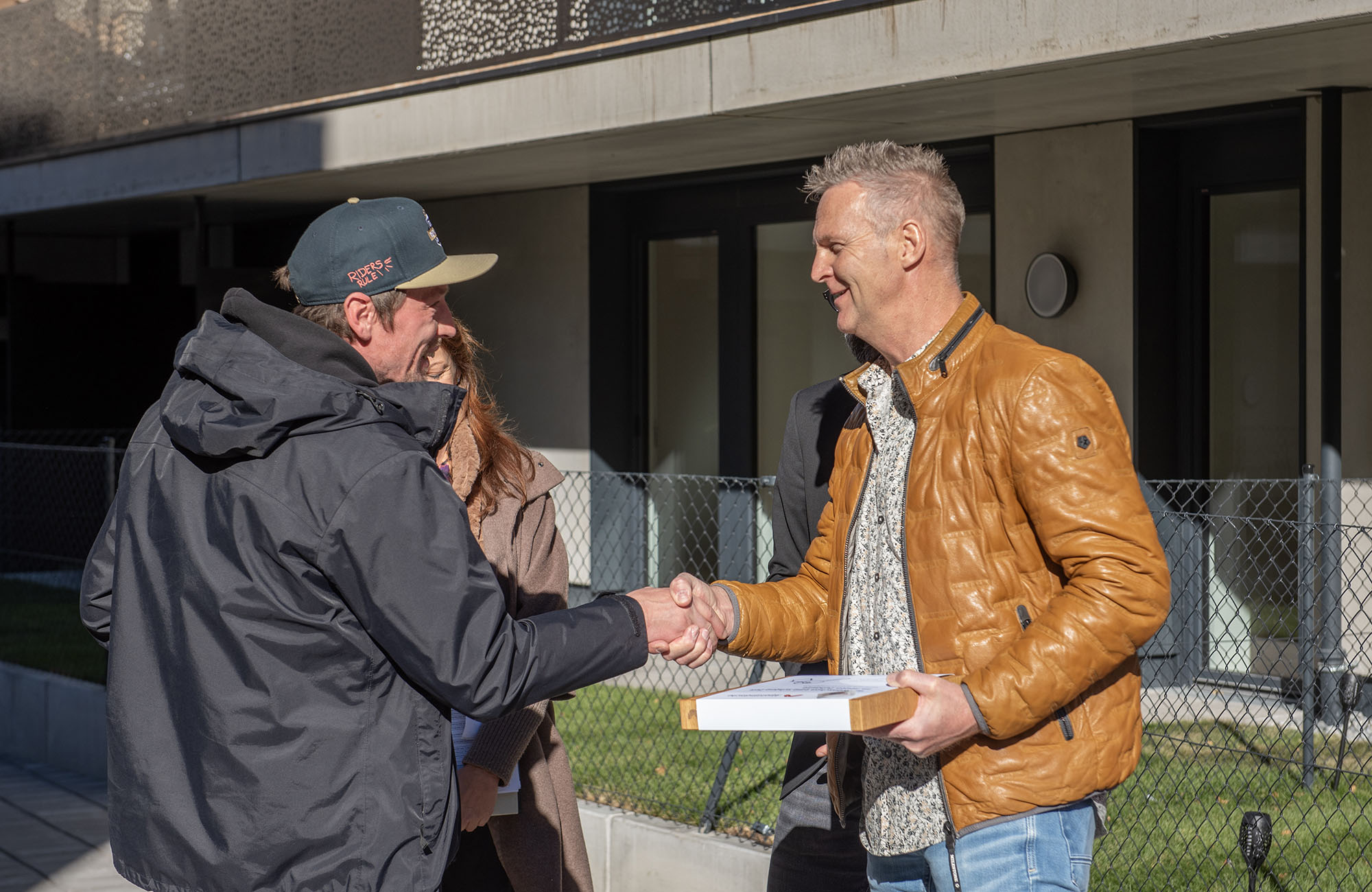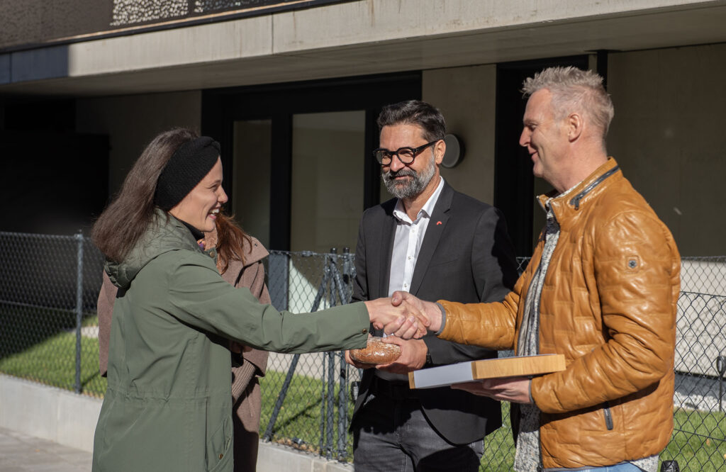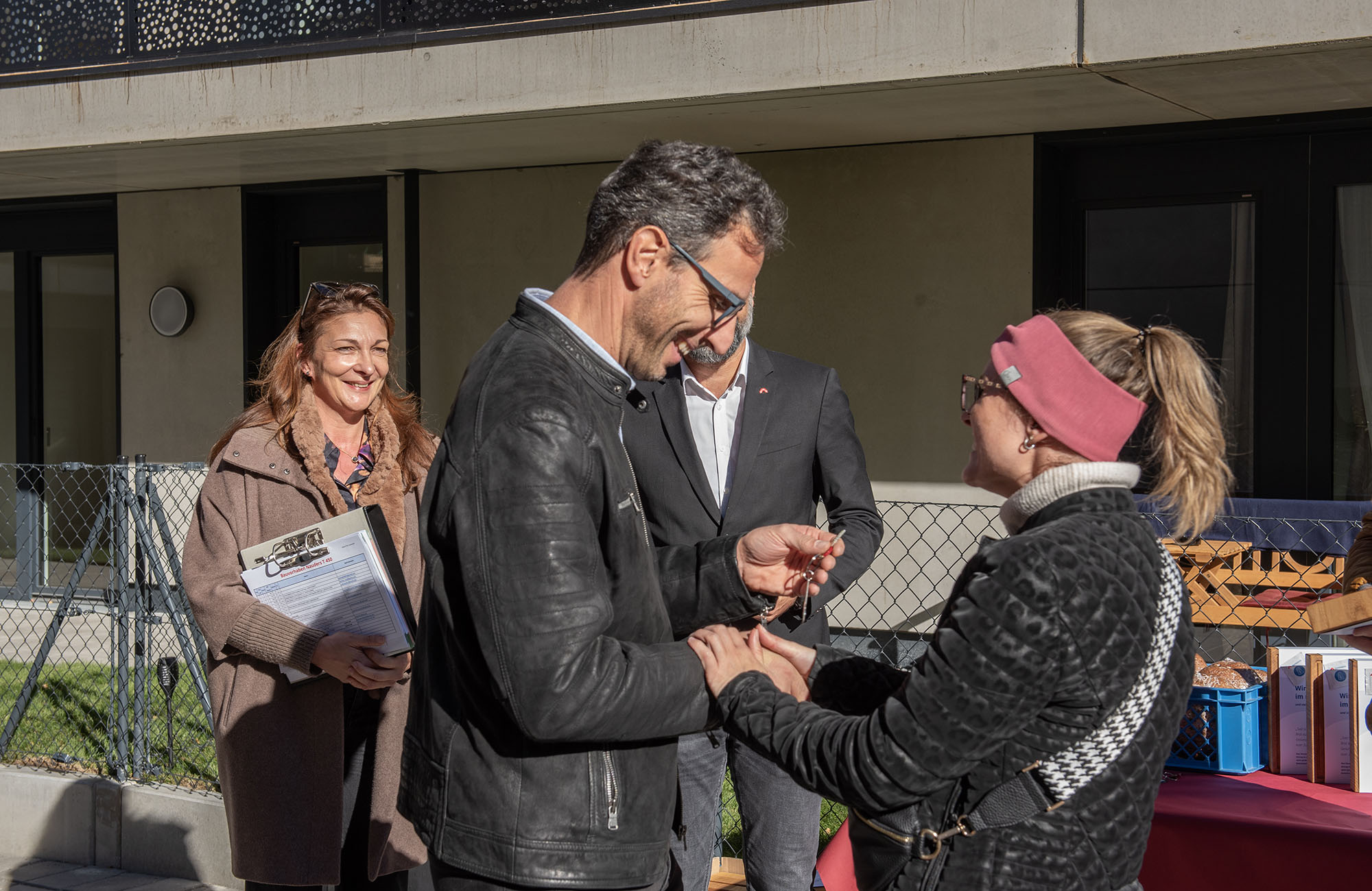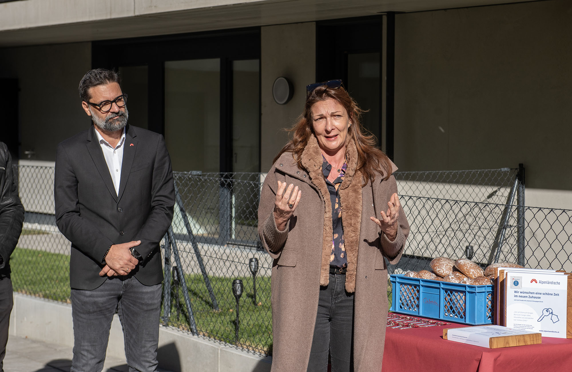 Bürgermeister Helmut Spöttl freute sich mit den Worten: „Nach mehreren bereits erfolgreich umgesetzten Projekten freut es mich ganz besonders, dass wir auch diesmal gemeinsam mit der Alpenländischen eine ausgesprochen ansprechende Wohnanlage realisieren konnten. Mit den top-wohnbaugeförderten Mietwohnungen schaffen wir als Gemeinde leistbaren und zugleich qualitativ hochwertigen Wohnraum. Die heutige Schlüsselübergabe ist ein besonderer Moment – einerseits, um allen Projektbeteiligten für ihre hervorragende Arbeit zu danken, und andererseits, weil zahlreiche Gemeindebürgerinnen und -bürger nun in ein wirklich schönes neues Zuhause einziehen können.“