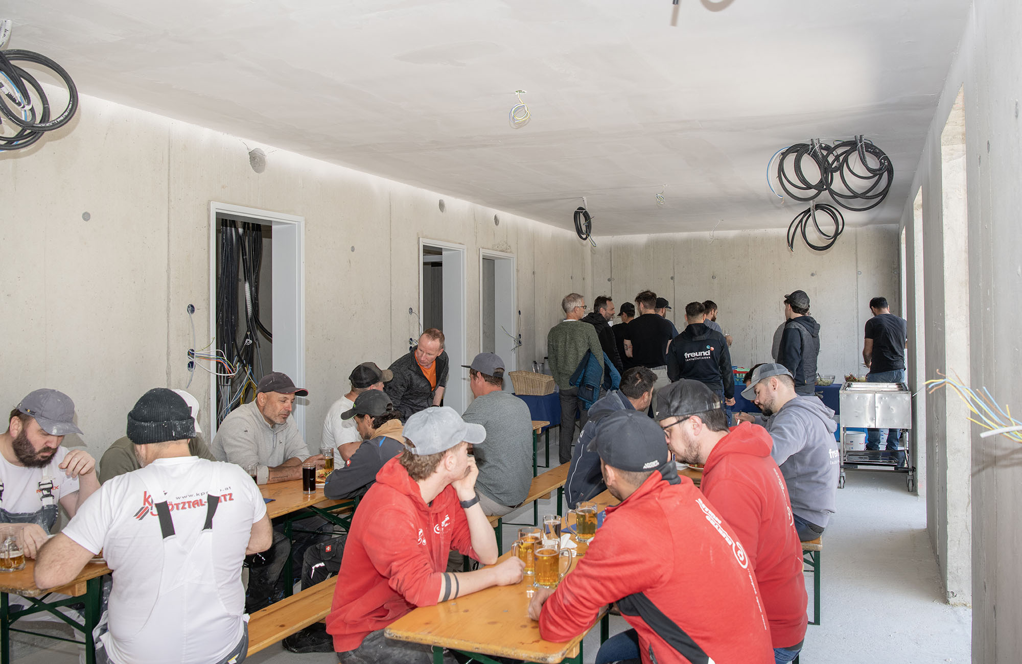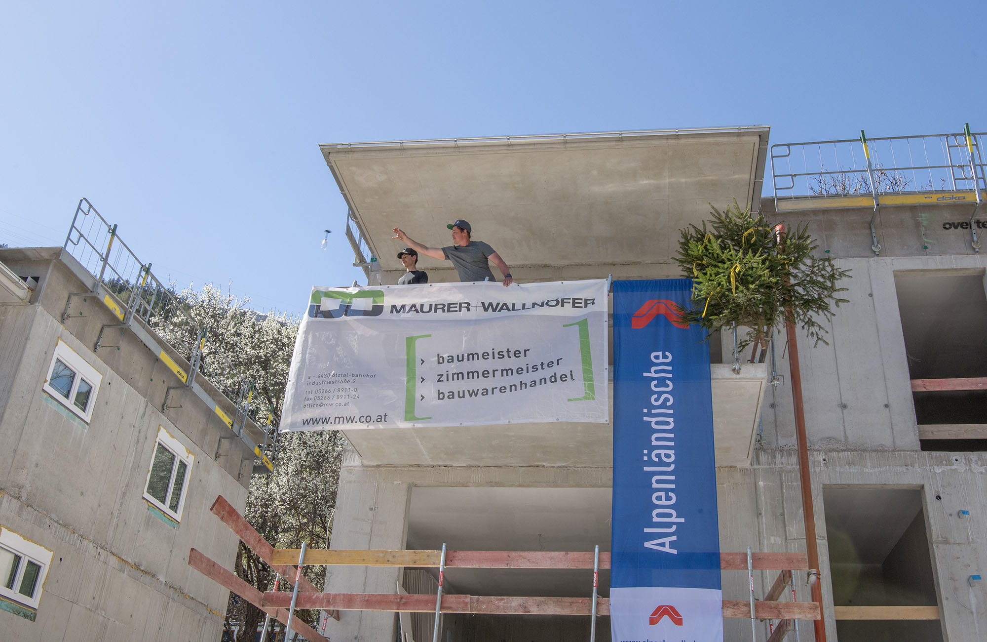 „Es ist beeindruckend zu sehen, wie zügig das Bauvorhaben voranschreitet. Mein Dank gilt der Alpenländischen, den Planern sowie den ausführenden Firmen und Handwerkern für die ausgezeichnete Arbeit. Rund zwei Drittel der Wohnungen konnten wir bis dato bereits vergeben und der Zuspruch für leistbaren Wohnraum in der Gemeinde ist sehr groß. Ich freue mich schon auf die feierliche Schlüsselübergabe an die Bewohnerinnen und Bewohner im Herbst dieses Jahres“, freut sich Bürgermeister Ing. Heinz Kofler.