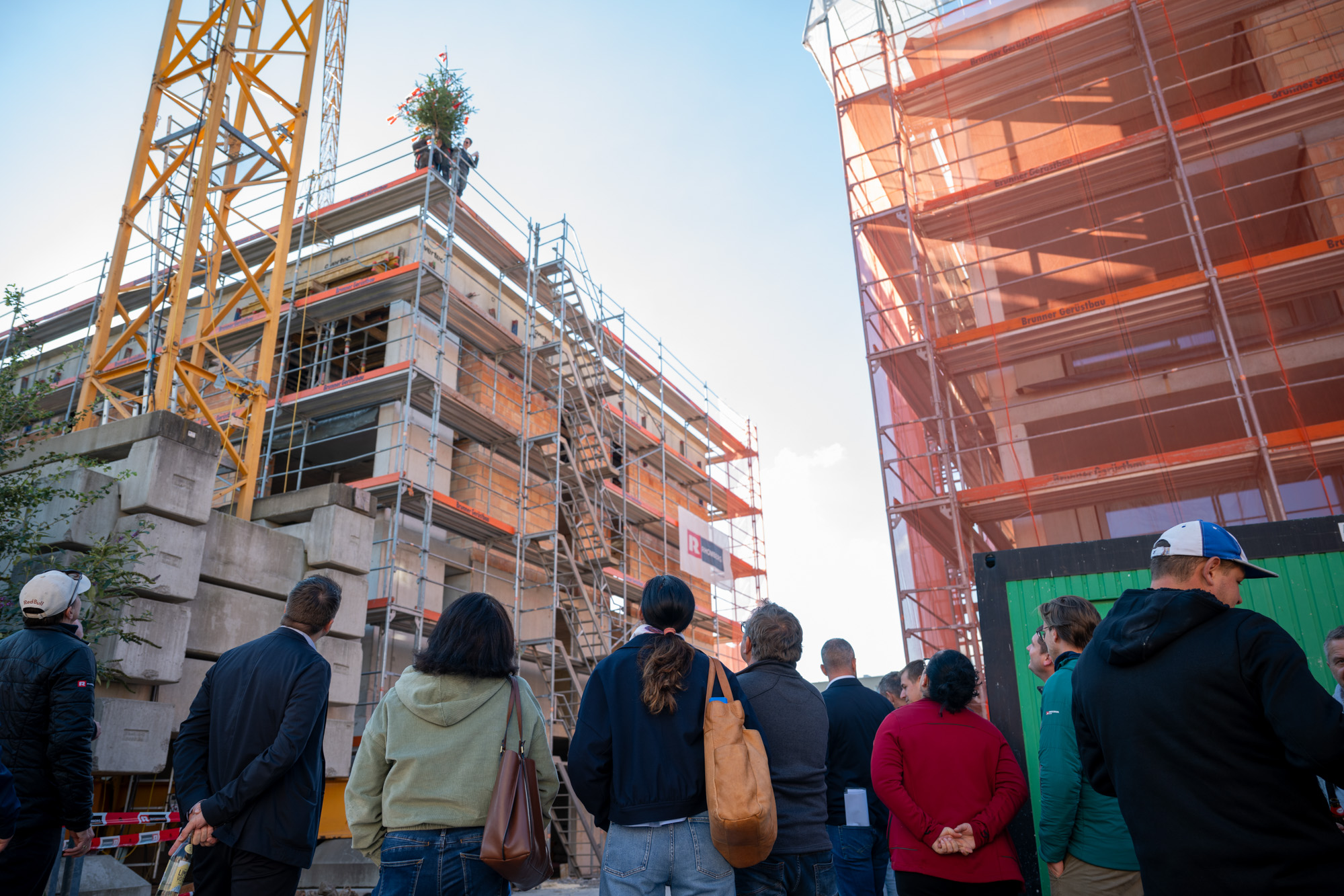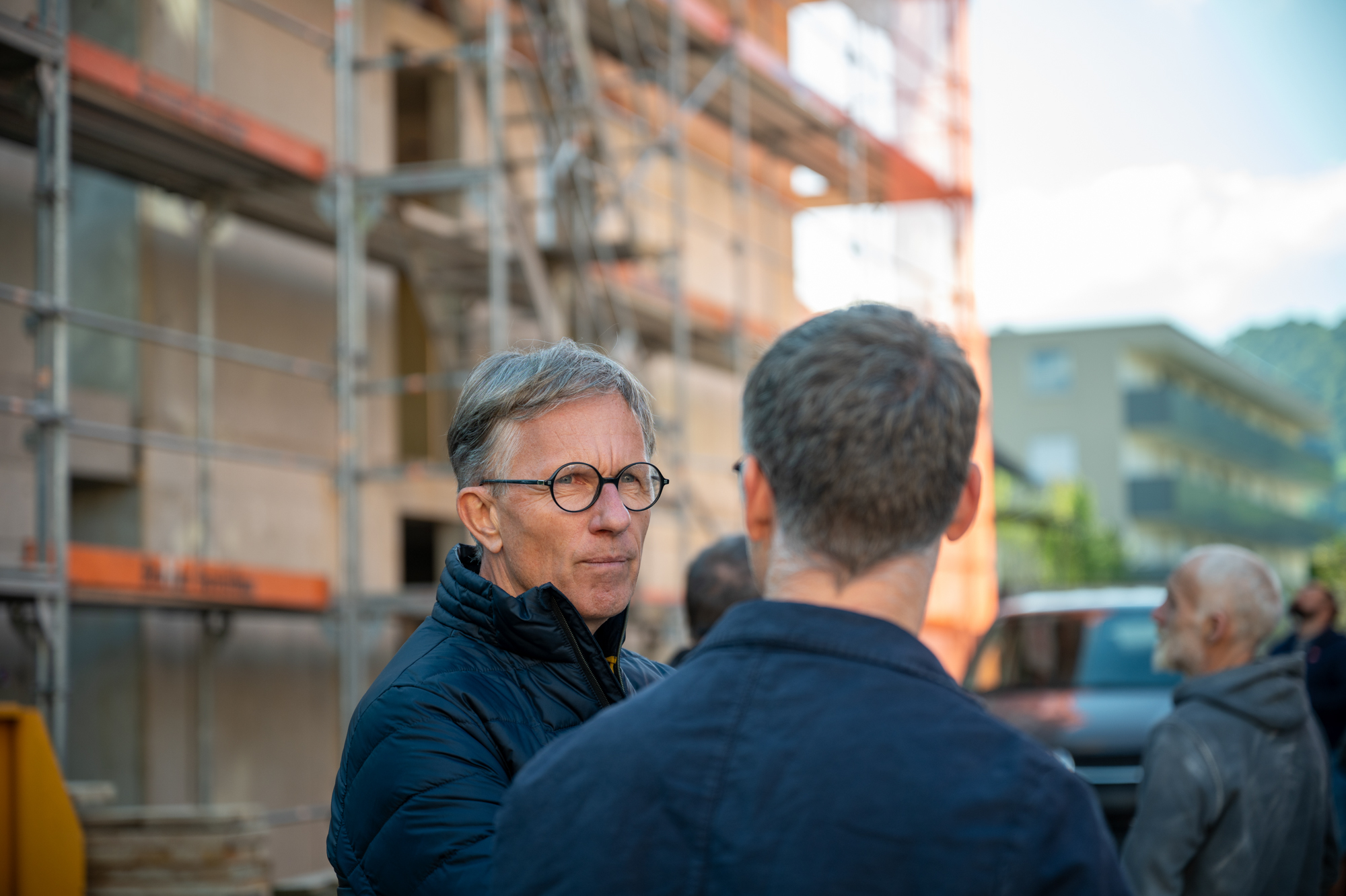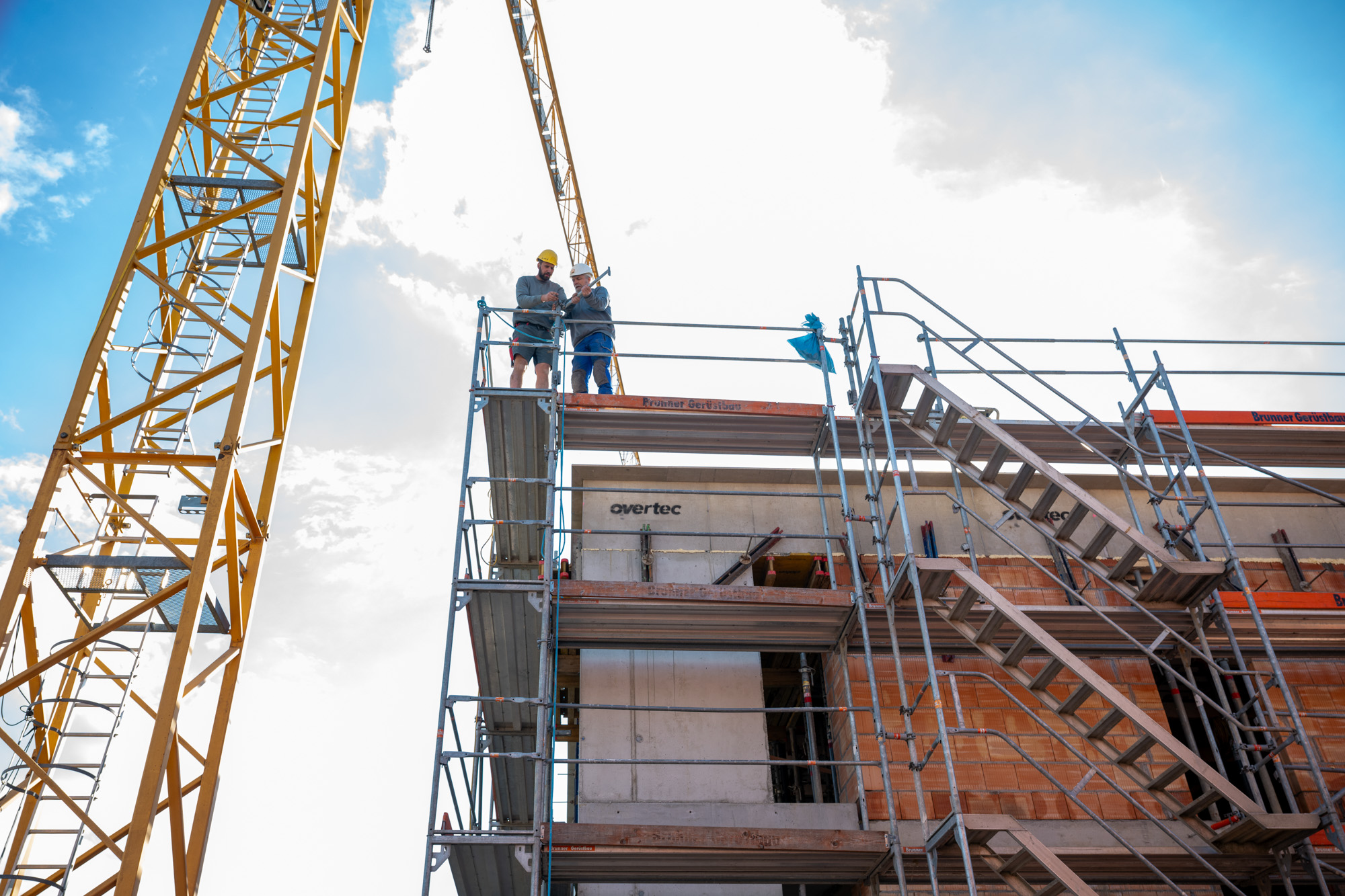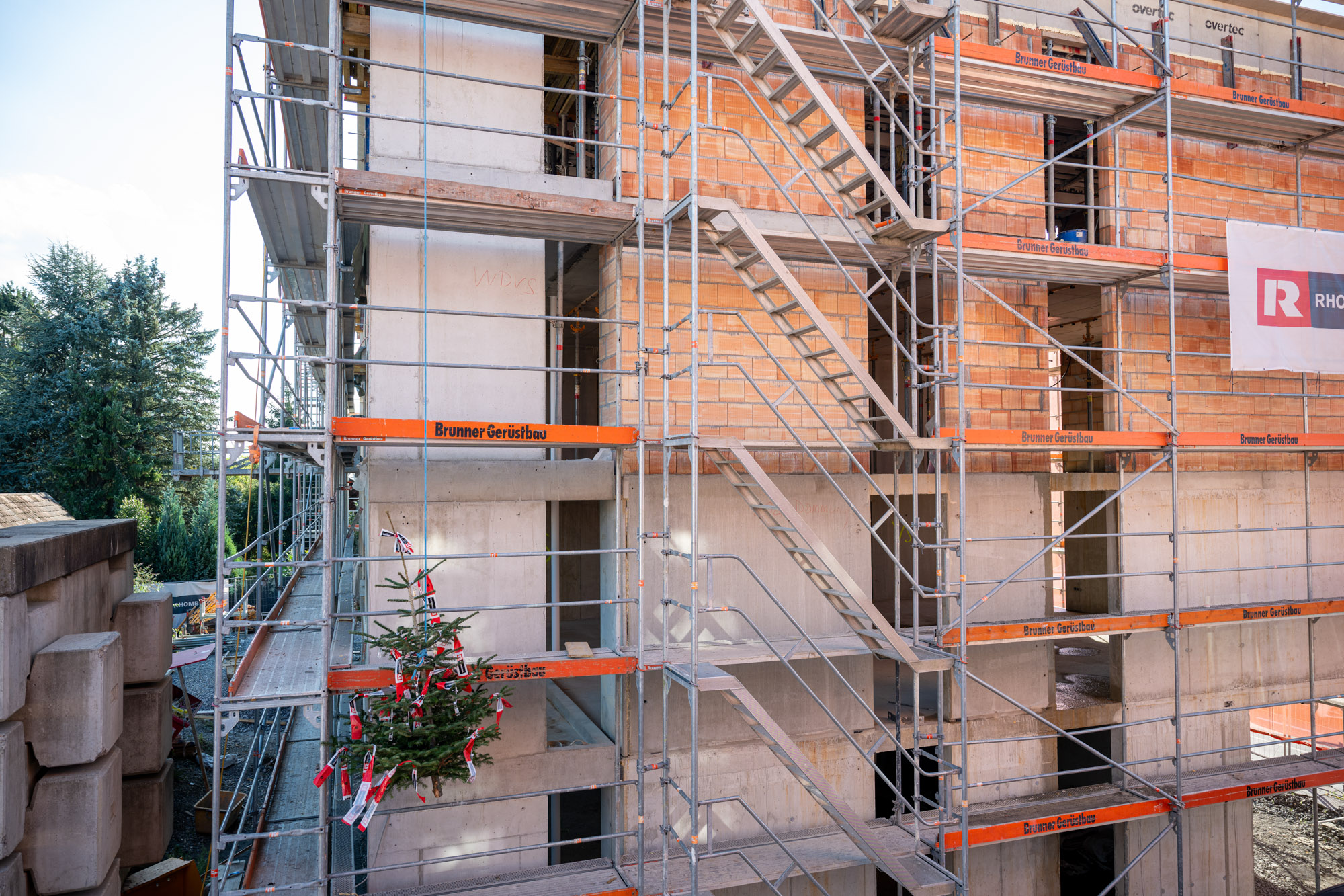 „Energetisch erfüllt die Anlage höchste Ansprüche: Wir haben eine Sole/Wasser-Wärmepumpe mit zentraler Lüftung samt Wärmerückgewinnung, eine Photovoltaikanlage sowie Fußbodenheizung eingebaut. Damit liegt der Heizwärmebedarf bei nur 28 kWh/m²a. Wir sind sehr stolz darauf, für und gemeinsam mit der Alpenländischen leistbaren und zugleich energieeffizienten Wohnraum zu schaffen – ein Mehrwert für die künftigen Bewohnerinnen und Bewohner ebenso wie für die Gemeinde Lustenau“, so GU Bauleiter Franz Sutterlüty von der Rhomberg Bau GmbH.
