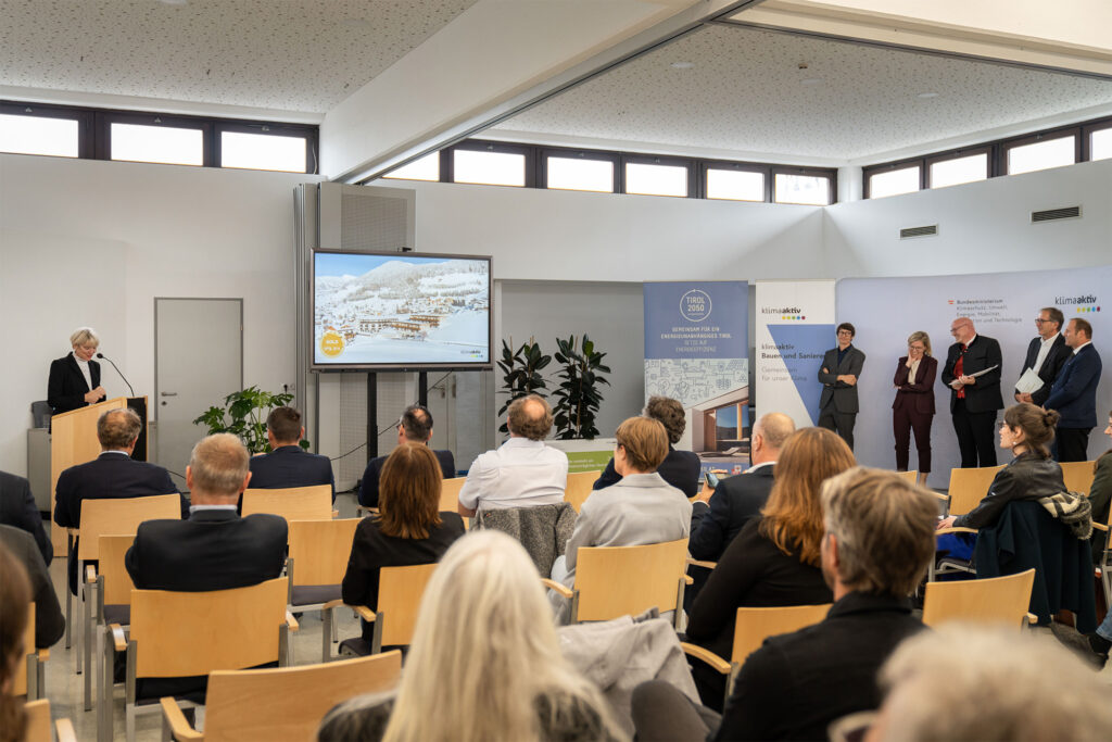 „Klimaaktiv Bauen und Sanieren“ ist eine Initiative des Klimaschutzministeriums. Seit 2004 wurden in Österreich über 1.120 Gebäude nach den Kriterien des klimaaktiv Gebäudestandards bewertet und deklariert. Etwa ein Drittel aller bislang deklarierten Gebäude kommen aus Tirol, wie Landeshauptmann-Stellvertreter Josef Geisler in seiner Ansprache hervorhob. Bei der diesjährigen Verleihung werden 35 Projekte mit „Gold“ ausgezeichnet, die in den Jahren 2020 und 2021 fertiggestellt wurden. Mehr als die Hälfte dieser höchst-prämierten Gebäude hat die Alpenländische errichtet.
