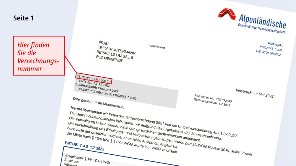 Die Verrechnungsnummer bitte bei Rückfragen angeben!