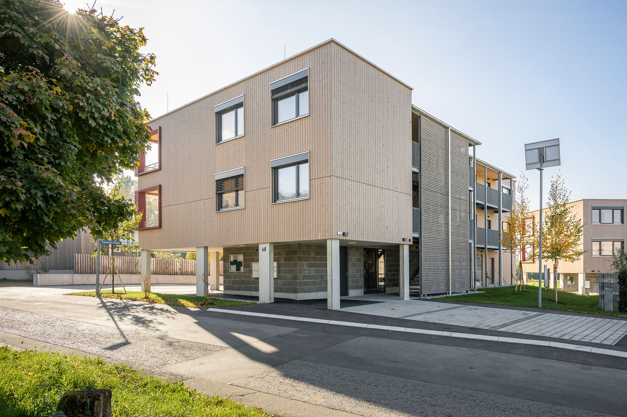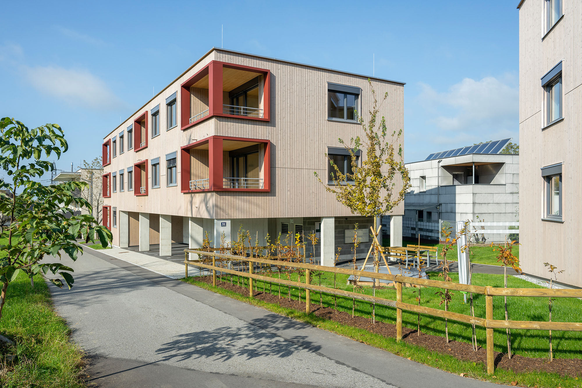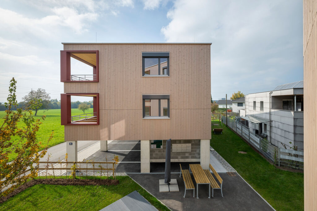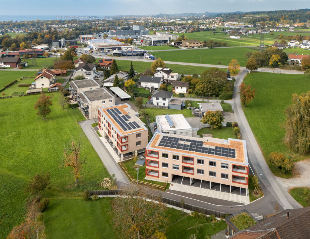 Eine Wohnanlage mit insgesamt 14 Mietwohnungen und 14 überdachten KFZ-Einstellplätzen, bestehend aus 2 Baukörpern, welche jeweils durch ein Stiegenhaus erschlossen werden. Die Technik- und Kellerräume werden im Massivbau ausgeführt mit Stahlbetondecken. Das Tragwerk der Wohnungen besteht aus Holzriegelwänden mit Massivholzdecken. Jede Wohnung verfügt über einen Balkon. Außerdem sind jeder Wohnungseinheit ein überdachter Carportplatz sowie ein Kellerabteil zugeordnet