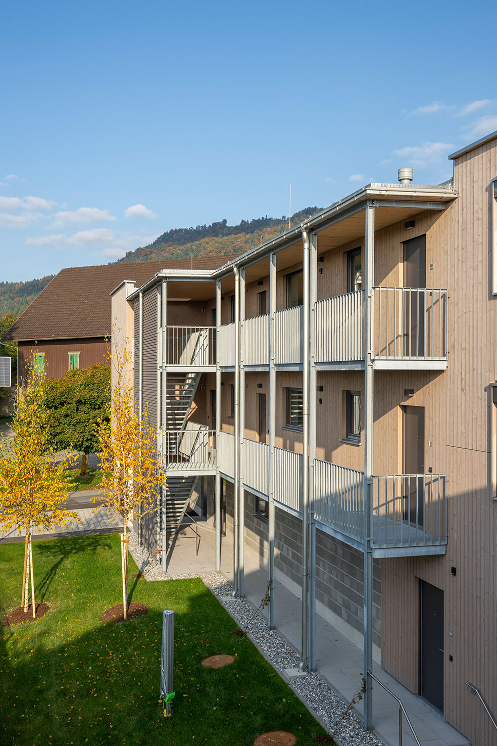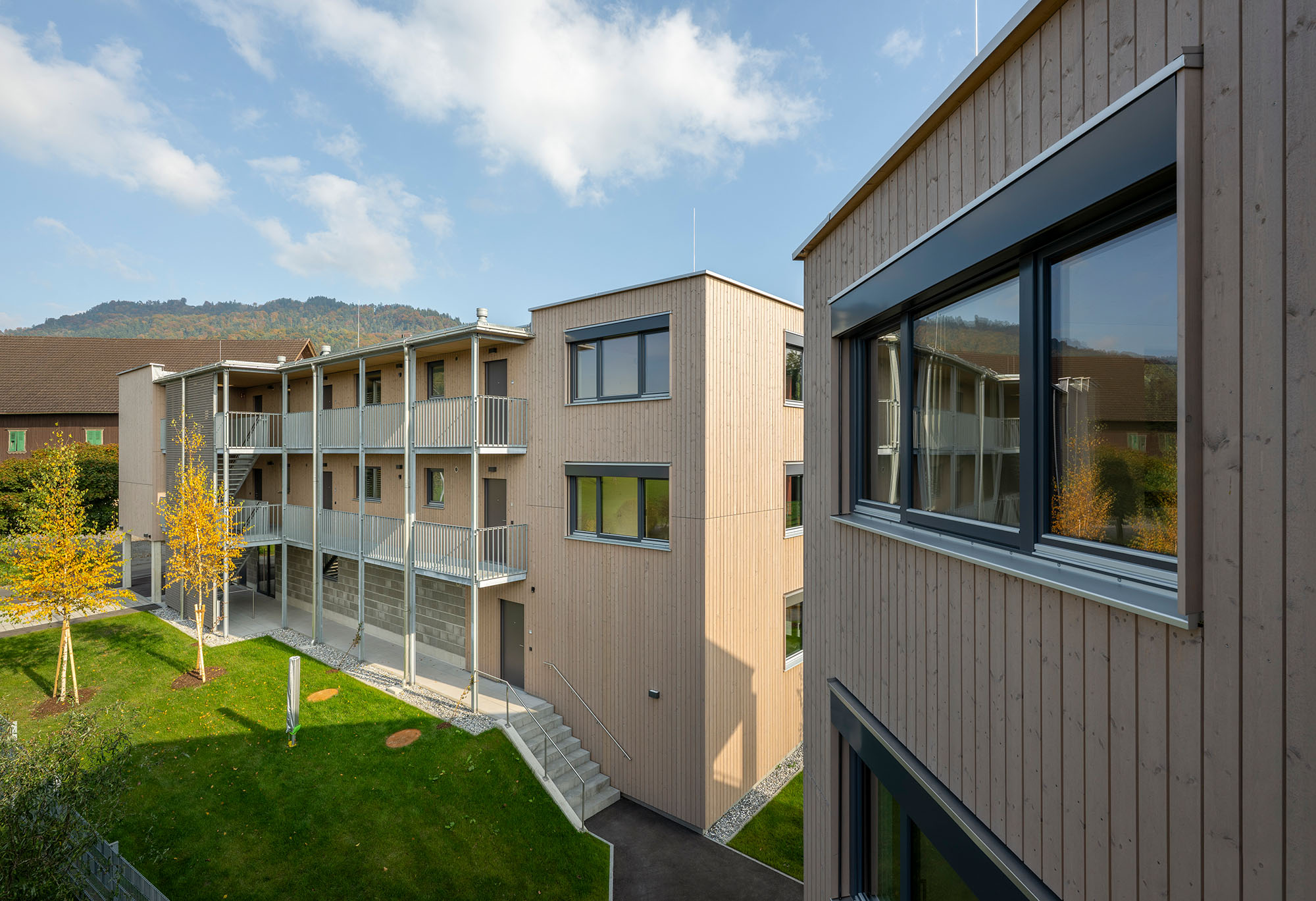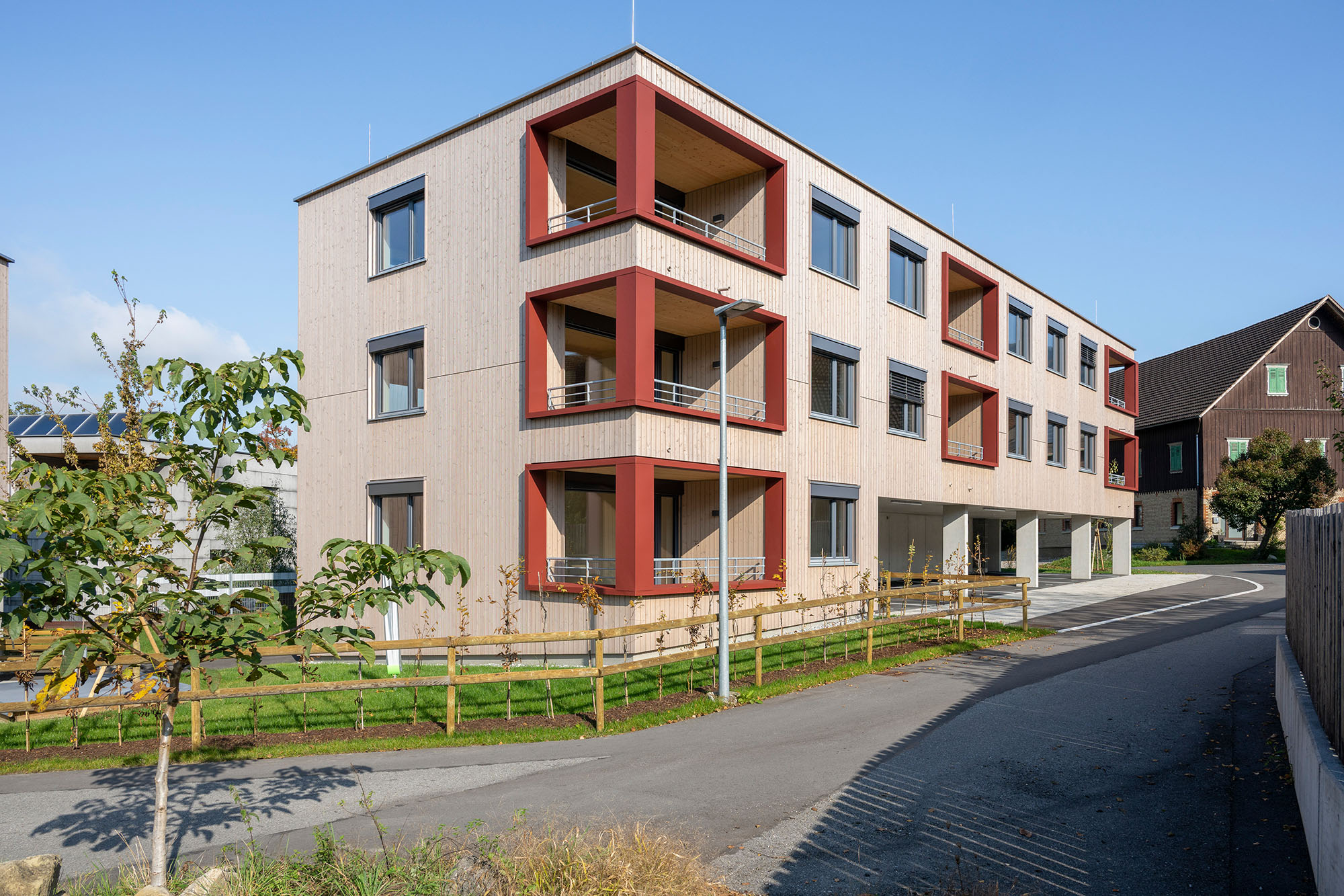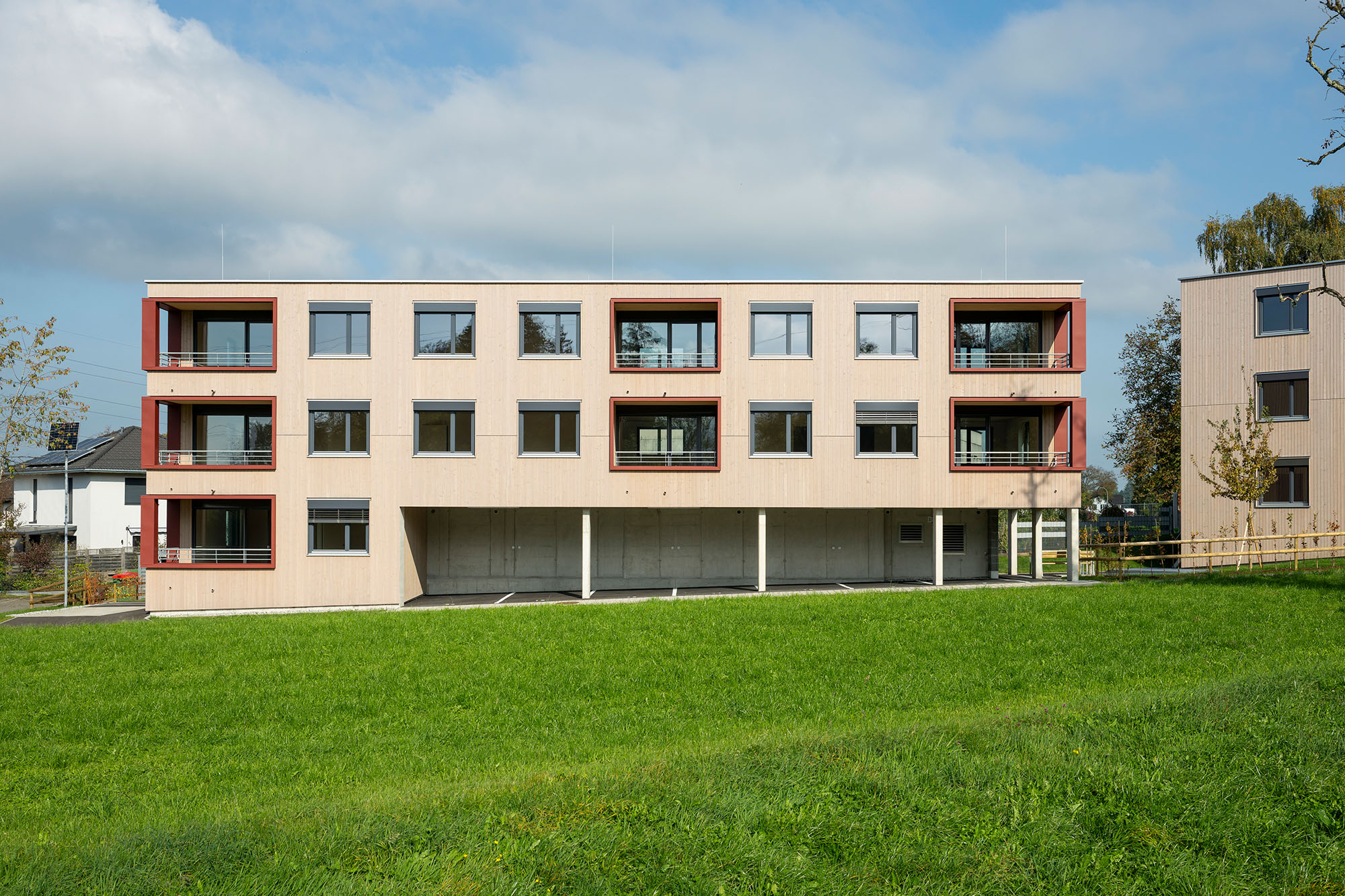Eine Wohnanlage mit insgesamt 14 Mietwohnungen und 14 überdachten KFZ-Einstellplätzen, bestehend aus 2 Baukörpern, welche jeweils durch ein Stiegenhaus erschlossen werden. Die Technik- und Kellerräume werden im Massivbau ausgeführt mit Stahlbetondecken. Das Tragwerk der Wohnungen besteht aus Holzriegelwänden mit Massivholzdecken. Jede Wohnung verfügt über einen Balkon. Außerdem sind jeder Wohnungseinheit ein überdachter Carportplatz sowie ein Kellerabteil zugeordnet